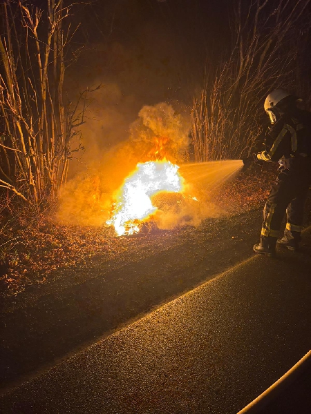An der Einsatzstelle brannten schließlich unsachgemäß entsorgte Autoreifen und der Brand hatte sich bereits auf Teile des angrenzenden Knicks ausgeweitet. Mit einem C-Rohr wurde das Feuer vom Angriffstrupp des LF10 unter Atemschutz zügig gelöscht.
