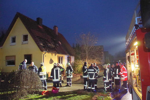 Die Hausbewohner brachten sich selber in Sicherheit, mussten aber mit Verdacht auf eine Rauchgasvergiftung ins Krankenhaus gebracht werden. Als die Feuerwehr wenig später zur Stelle war, hatten sich der Brand bereits in die Dachkonstruktion des Hauses gefressen.
