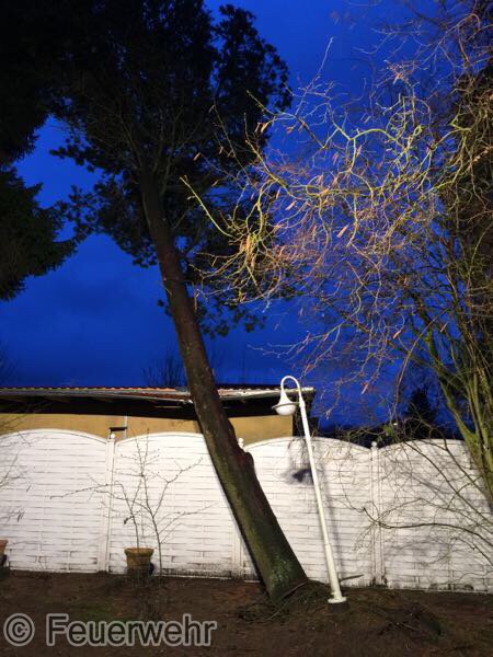 Baum droht auf Garage zu fallen